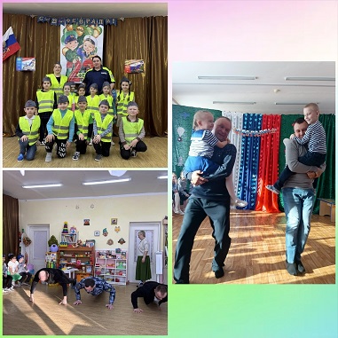 В предверии праздника Дня защитника Отечества в детском саду было проведено праздничное мероприятие "Бегаем, прыгаем, не тужим, с папами и ПДД дружим!"