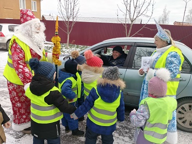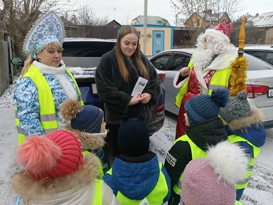 С целью профилактики и предупреждения дорожно-транспортных происшествий с участием детей наши воспитанники из отряда ЮПИД «Дорожная азбука» совместно с представителями Родительского патруля и педагогами вручили памятки водителям «Внимание! На дороге дети!» и от души поздравили их с наступающим Новым годом!