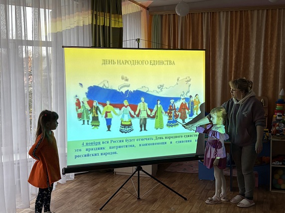 В преддверии этого праздника в детском саду проходят тематические мероприятия, направленные на патриотическое воспитание дошкольников: познавательные занятия «День народного единства: дружба народов», спортивные квест-игры «В единстве народов великая сила», творческие выставки рисунков «Народов дружный хоровод».