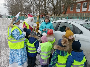 С целью профилактики и предупреждения дорожно-транспортных происшествий с участием детей наши воспитанники из отряда ЮПИД «Дорожная азбука» совместно с представителями Родительского патруля и педагогами вручили памятки водителям «Внимание! На дороге дети!» и от души поздравили их с наступающим Новым годом!